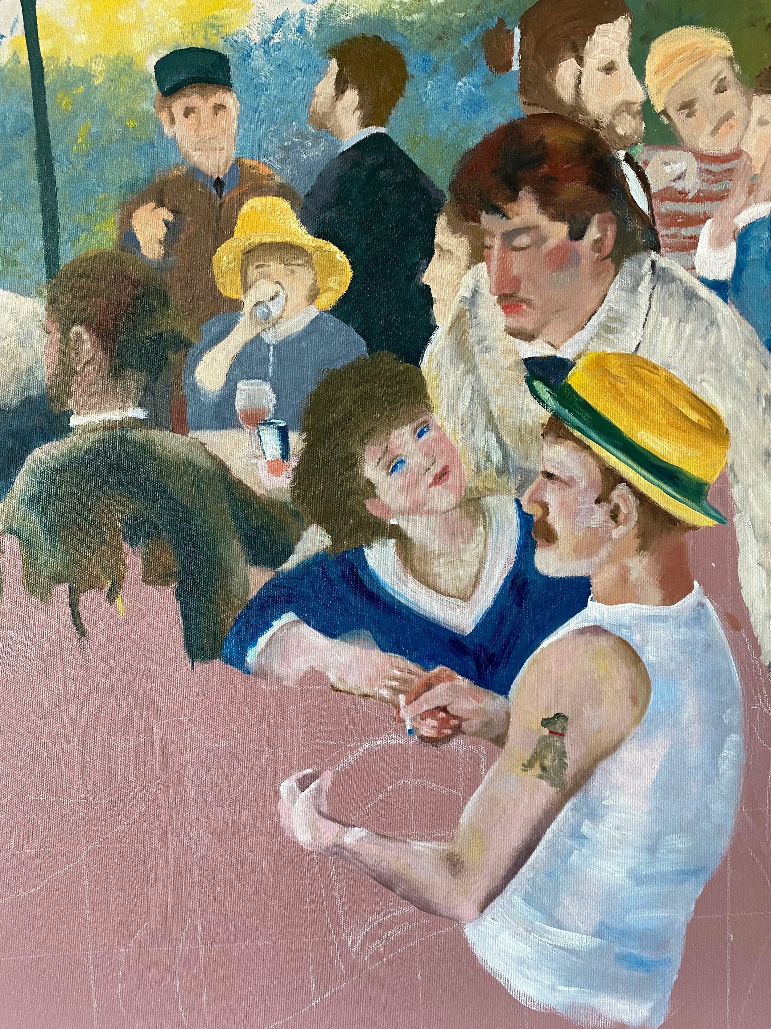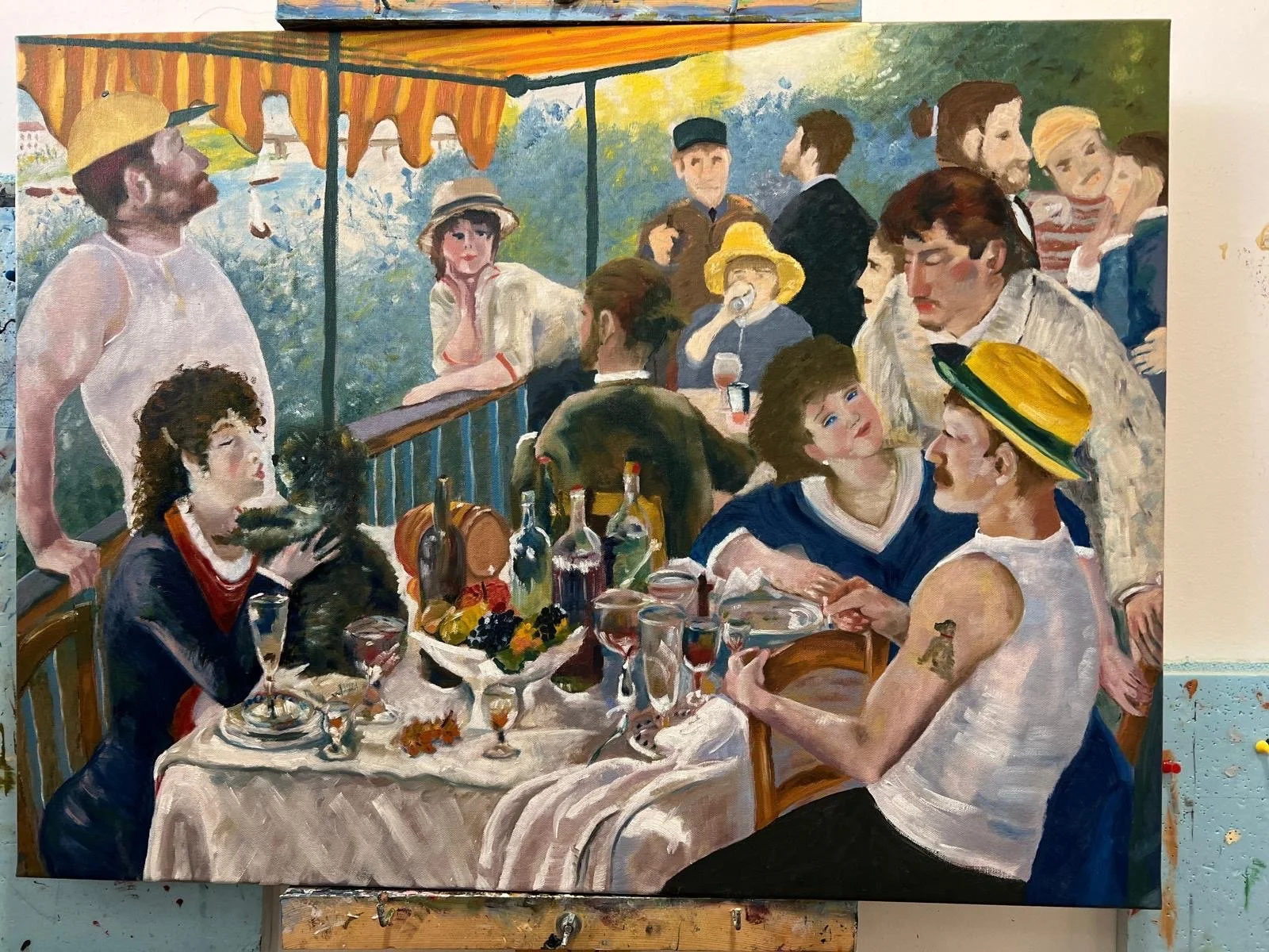 Ich erlebe die Expertise von Karen Wride beim Nachmalen bzw. einer Eigeninterpretation des Werkes «Frühstück der Ruderer/Le déjeuner des canotiers» von Auguste Renoir. Es ist mein viertes Bild.