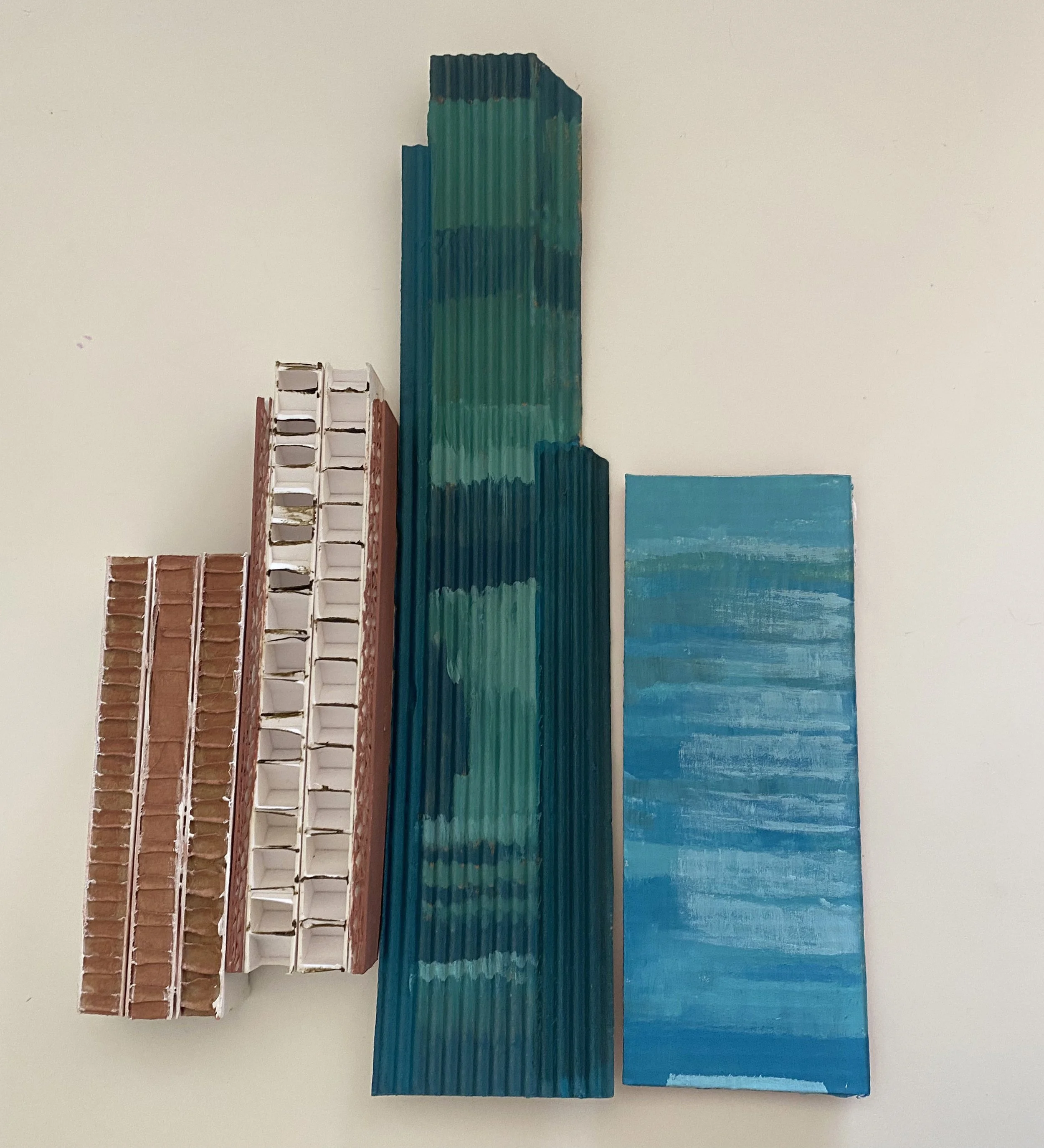 Step 3: Die Displaykartons sind super - in Sekunden entsteht ein sichtbarer Stockwerkbau. Jetzt die Farben mit dem Spiegelrand abstimmen und das Farbkonzept angleichen. Alles bemalen und dann wird jedes Gebäude mit Spray “versiegelt”, um die Farben zu schützen und Staub abzuwenden.